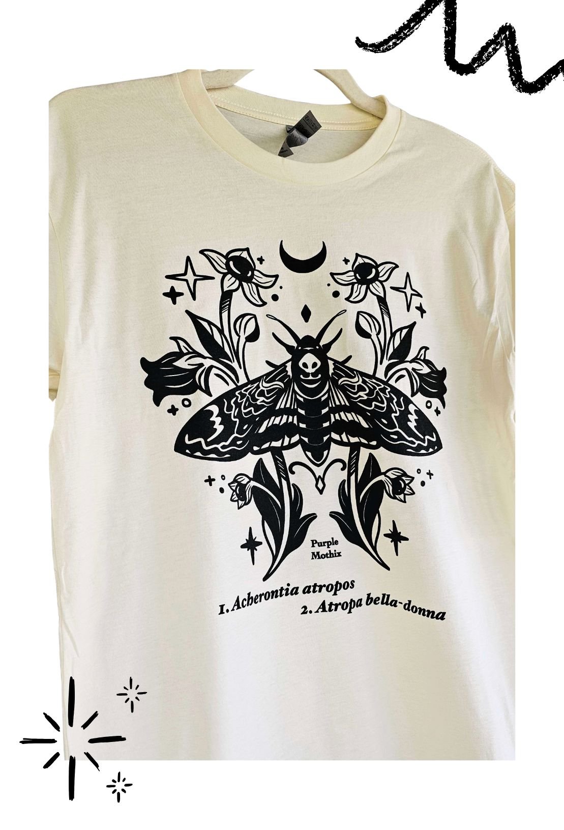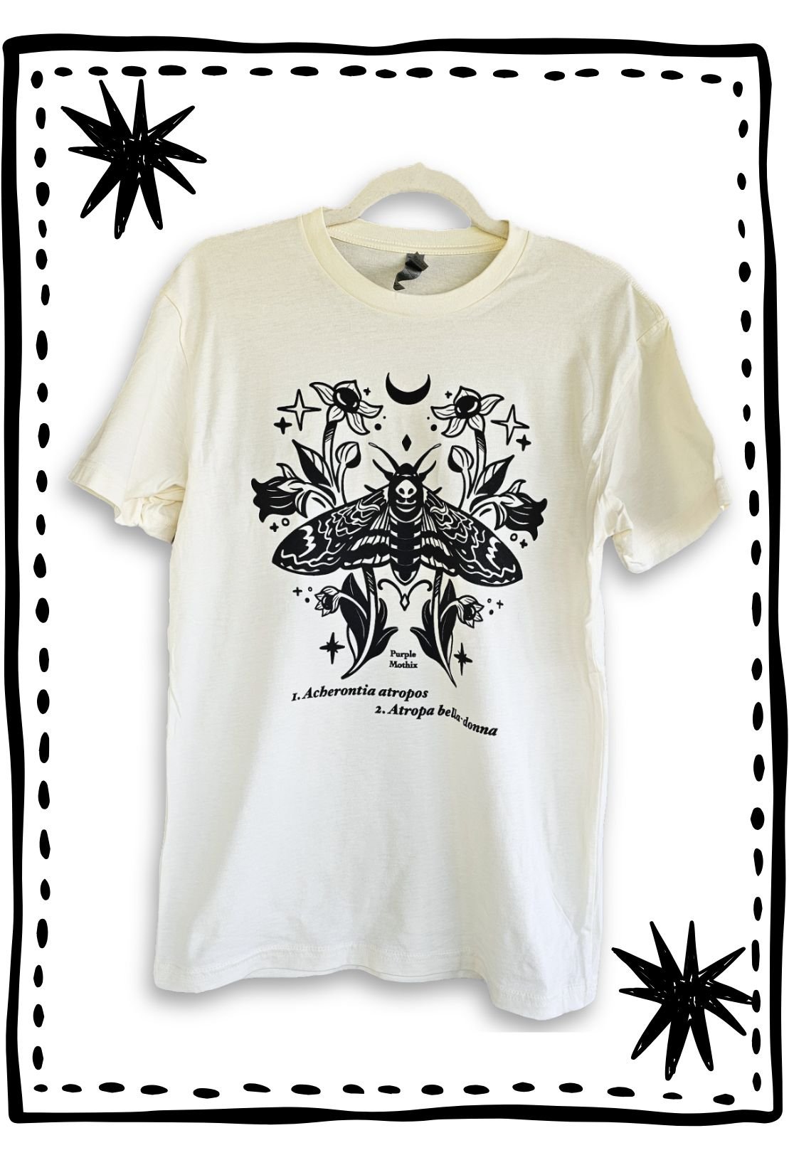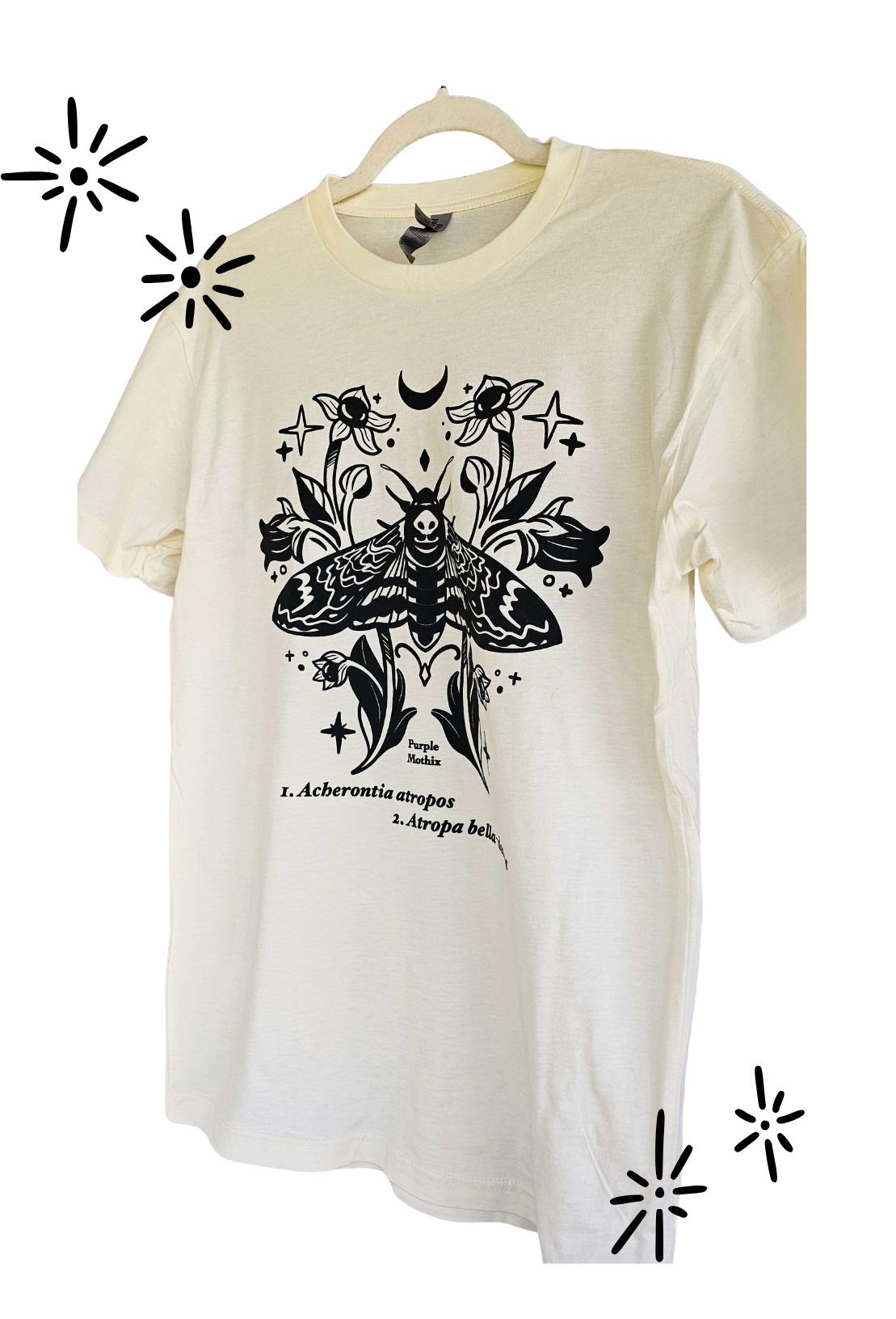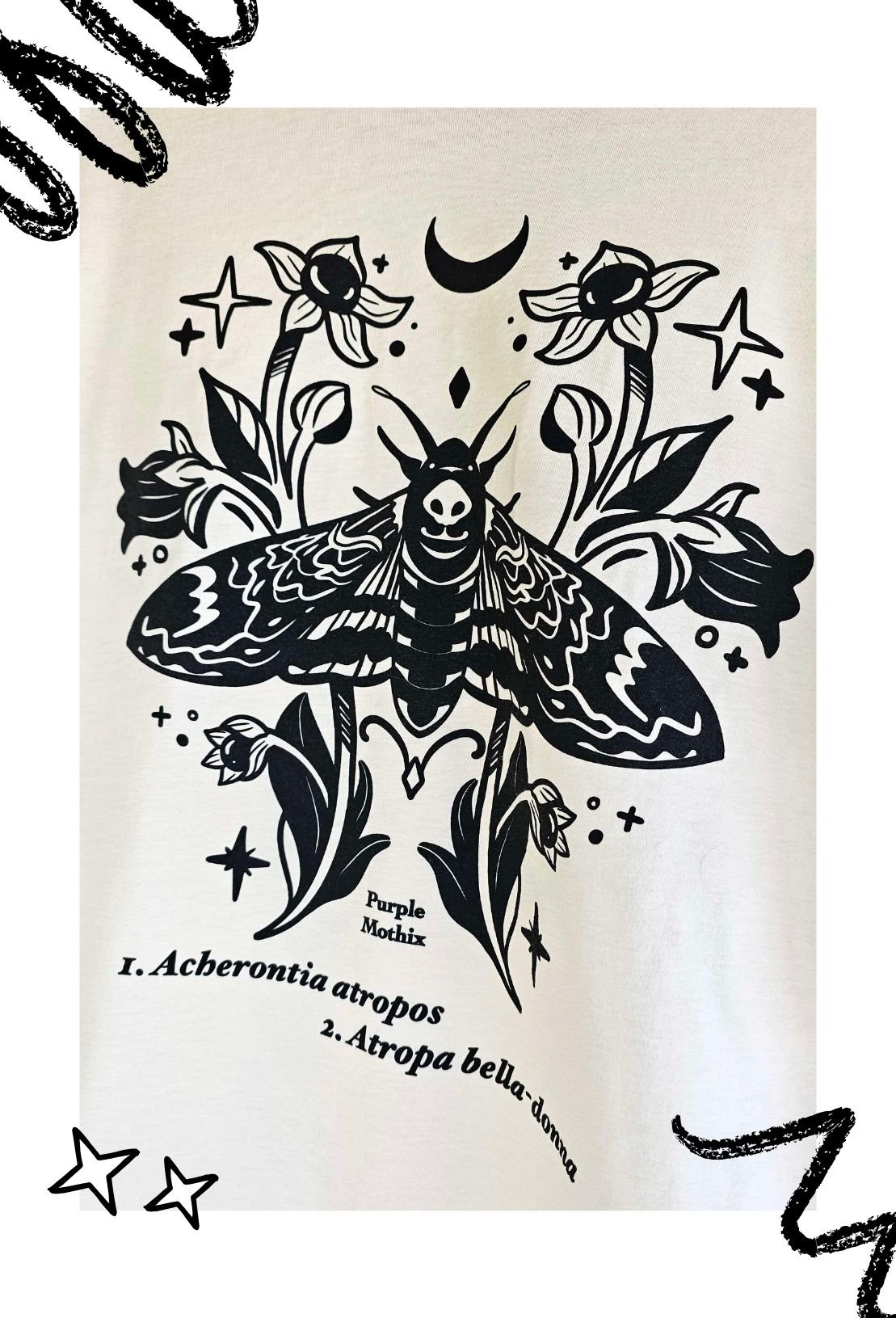 Death-head moth and Deadly Nightshade flower; 100% cotton, off white color.