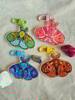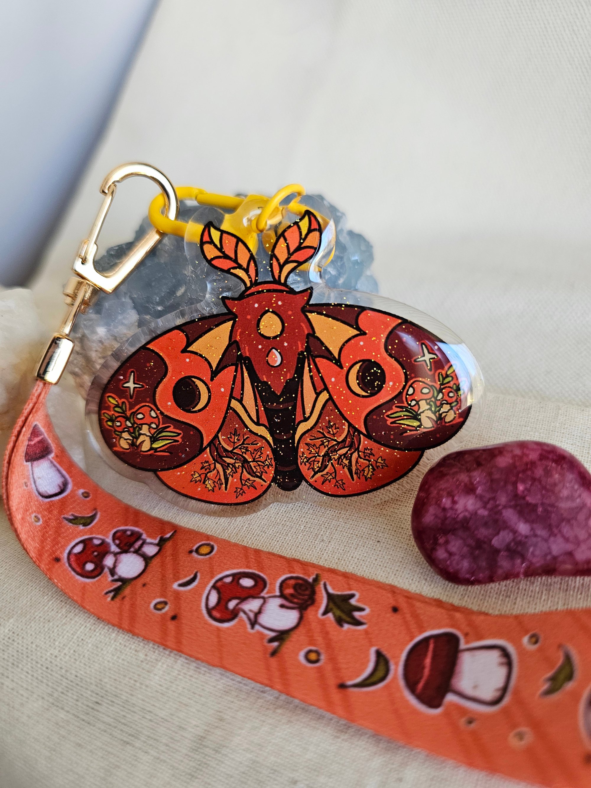 Spring, Summer, Autumn, and Winter themed acrylic moth key chain. Each includes a lanyard. Key chain size approx. "2.5" Lanyard size approx. 5"